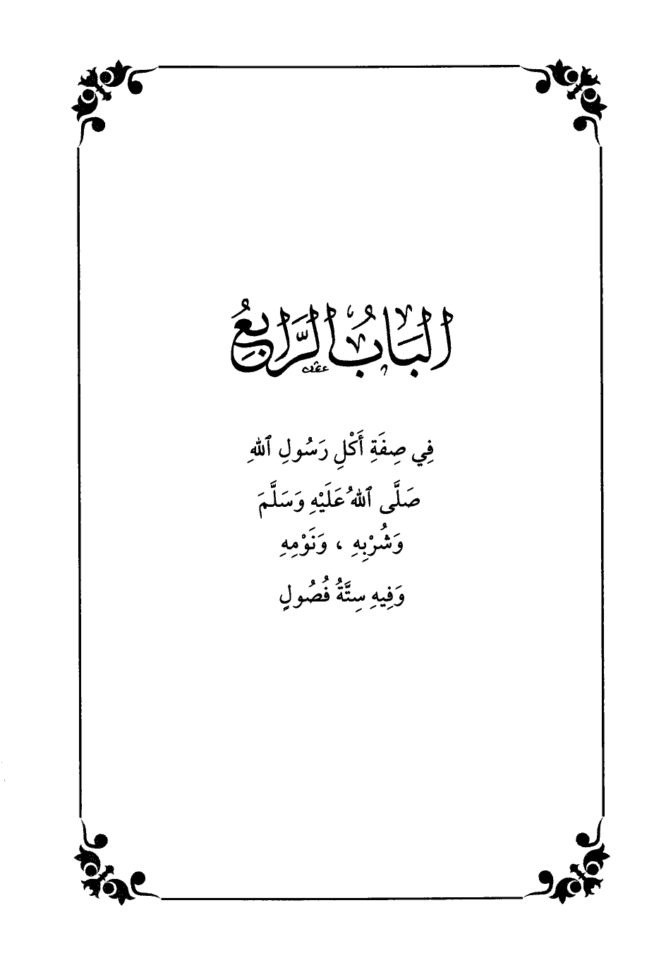 الباب الرّابع في صفة أكل رسول الله صلّى الله عليه وسلّم وشربه، ونومه