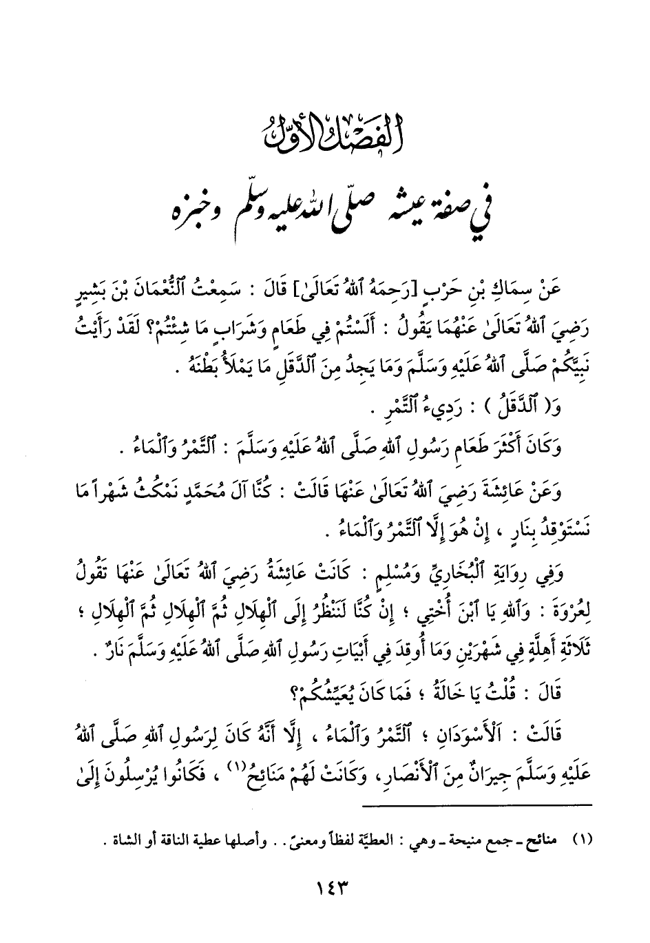 الفصل الأوّل في صفة عيشه صلّى الله عليه وسلّم وخبزه