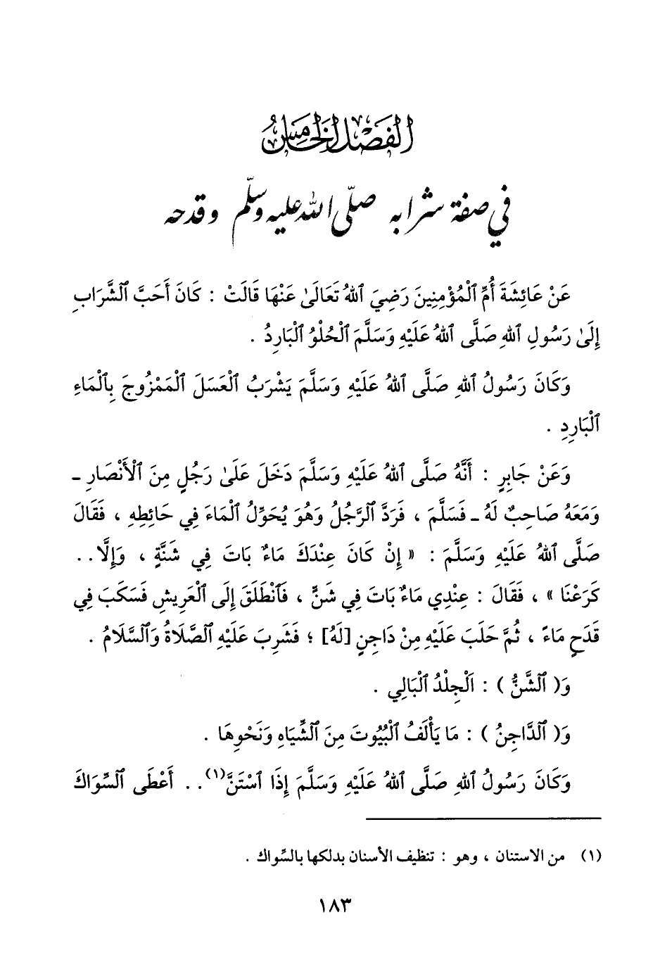 الفصل الخامس في صفة شرابه صلّى الله عليه وسلّم وقدحه