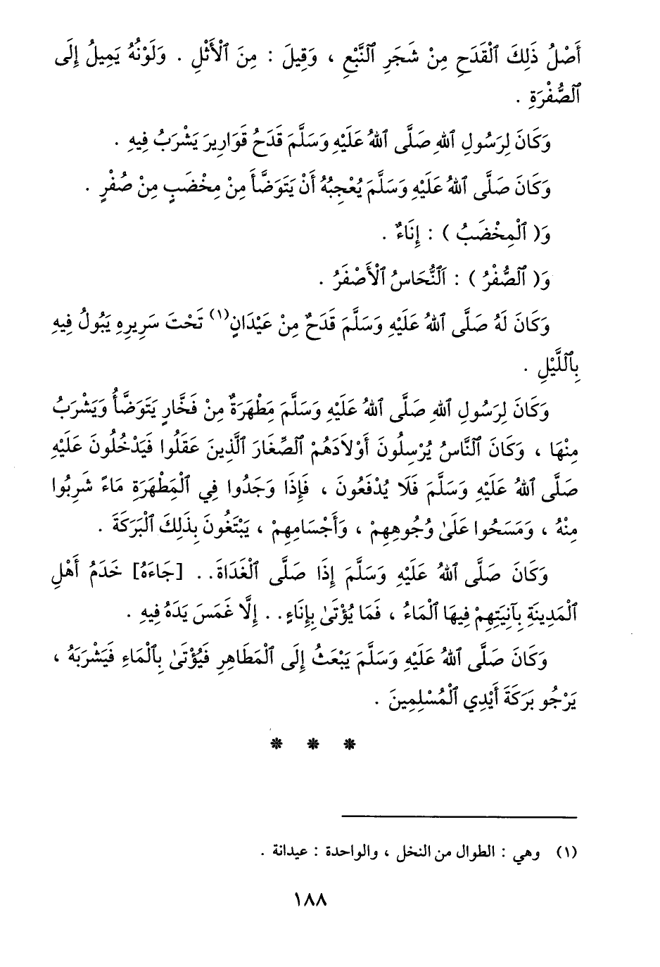 وكان صلّى الله عليه وسلّم إذا صلّى الغداة.. [جاءه] خدم أهل المدينة بانيتهم فيها الماء، فما يؤتى بإناء.. إلّا غمس يده فيه.