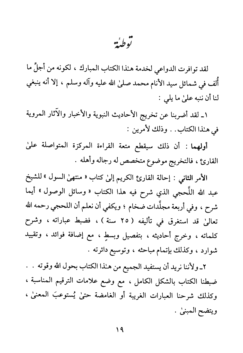 كتاب وسائل الوصول إلى شمائل الرسول صلى الله عليه وآله وسلم