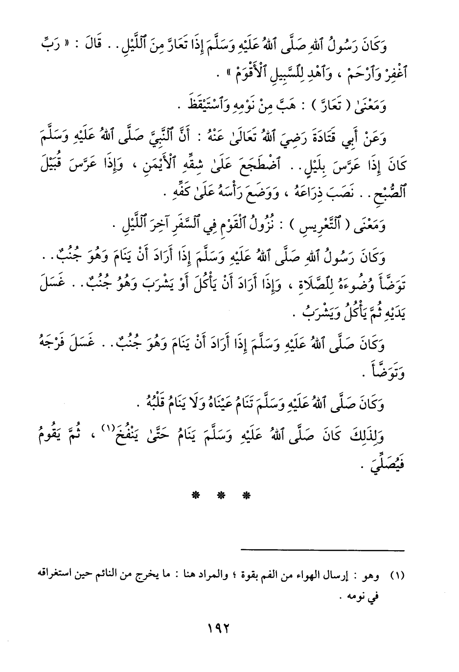 وكان رسول الله صلّى الله عليه وسلّم إذا تعارّ من اللّيل.. قال: «ربّ اغفر وارحم، واهد للسّبيل الأقوم» .