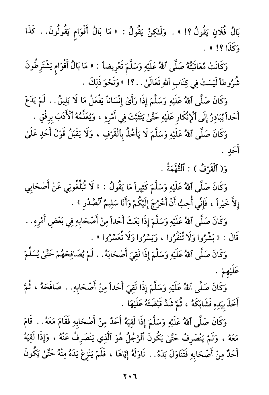 وكان صلّى الله عليه وسلّم إذا لقيه أحد من أصحابه فقام معه.. قام معه، ولم ينصرف حتّى يكون الرّجل هو الّذي ينصرف عنه، وإذا لقيه أحد من أصحابه فتناول يده.. ناوله إيّاها، فلم ينزع يده منه حتّى يكون