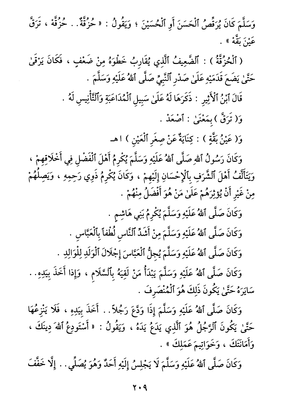 وسلّم كان يرقّص الحسن أو الحسين؛ ويقول: «حزقّة.. حزقّة، ترقّ عين بقّه» .