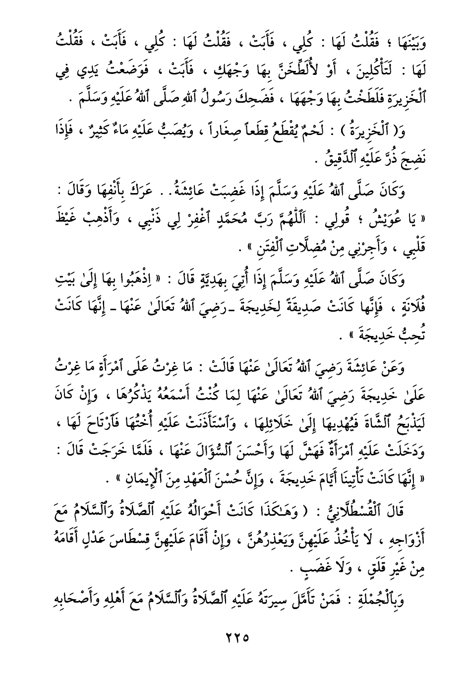 قال القسطلّانيّ: (وهكذا كانت أحواله عليه الصّلاة والسّلام مع أزواجه، لا يأخذ عليهنّ ويعذرهنّ، وإن أقام عليهنّ قسطاس عدل أقامه من غير قلق، ولا غضب.