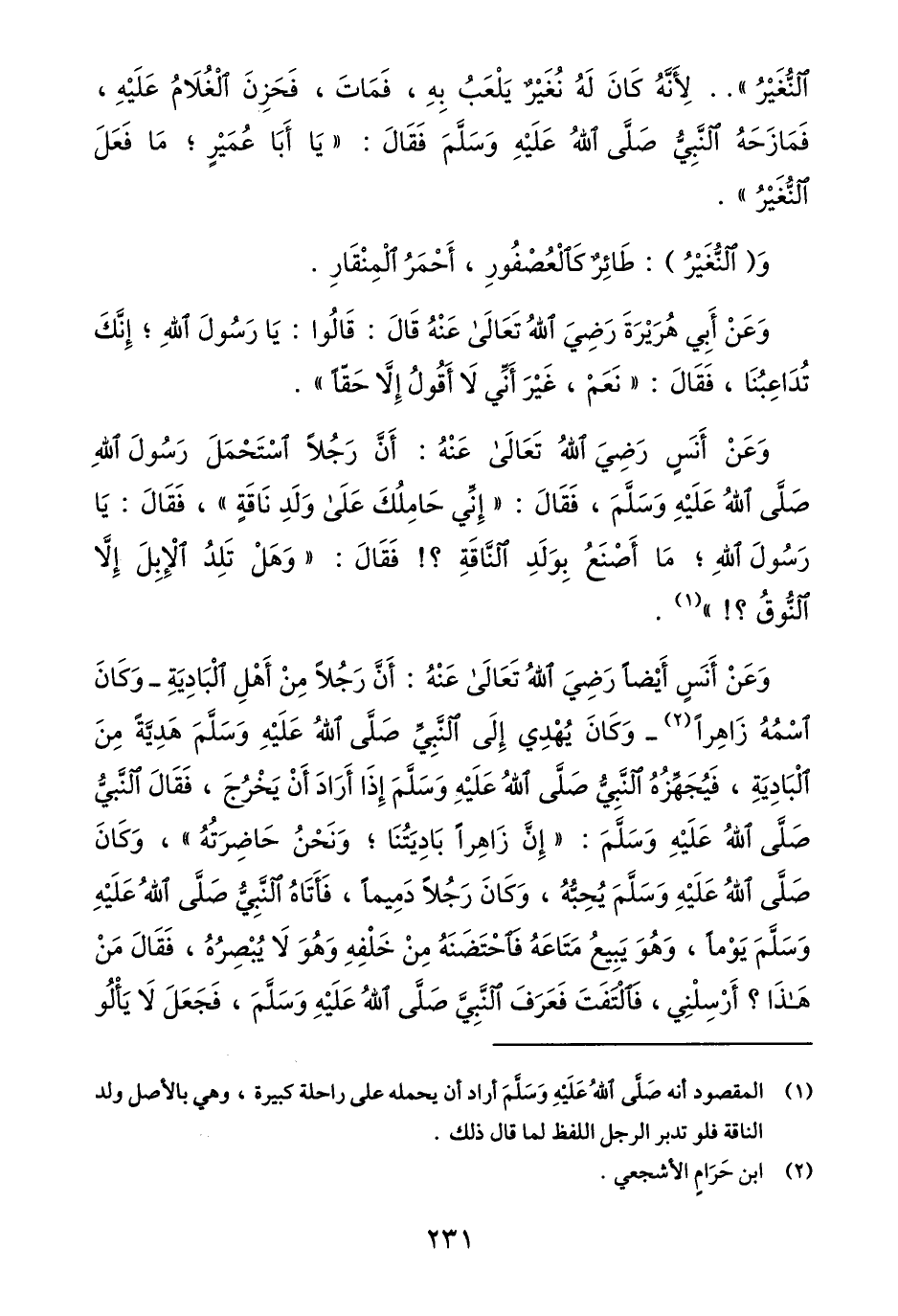 (1) المقصود أنه صلّى الله عليه وسلّم أراد أن يحمله على راحلة كبيرة، وهي بالأصل ولد الناقة فلو تدبر الرجل اللفظ لما قال ذلك.