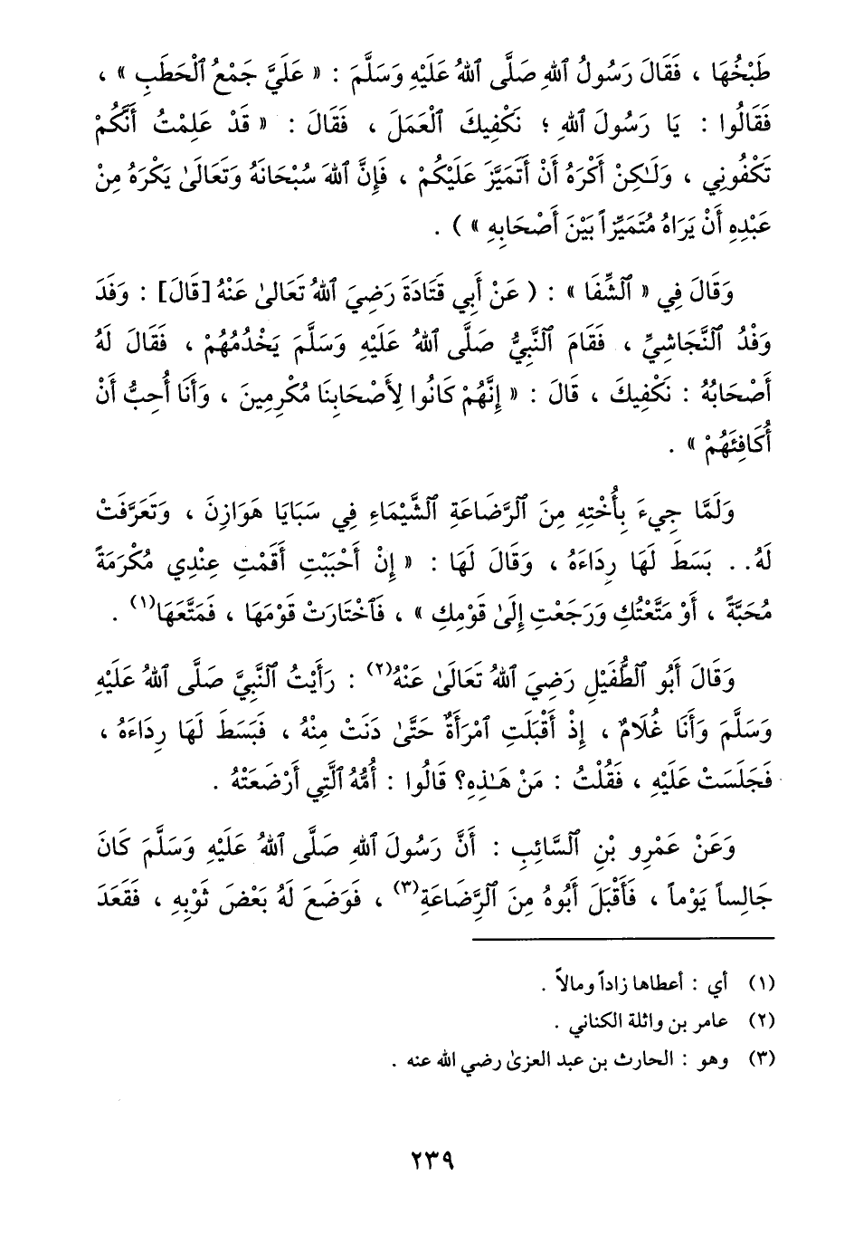 وقال في «الشّفا» : (عن أبي قتادة رضي الله تعالى عنه [قال] : وفد وفد النّجاشيّ، فقام النّبيّ صلّى الله عليه وسلّم يخدمهم، فقال له أصحابه: نكفيك، قال: «إنّهم كانوا لأصحابنا مكرمين، وأنا أحبّ أن أكافئهم» .