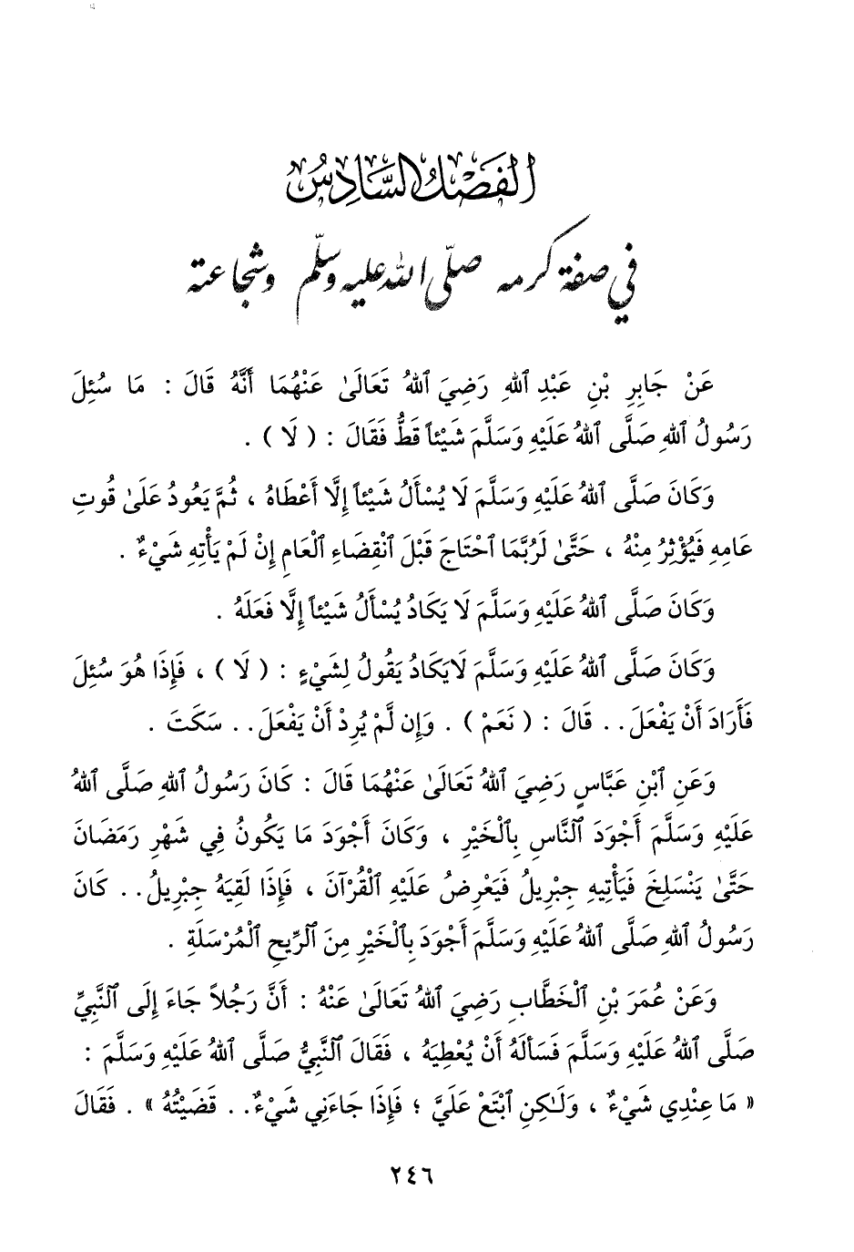 الفصل السّادس في صفة كرمه صلّى الله عليه وسلّم وشجاعته