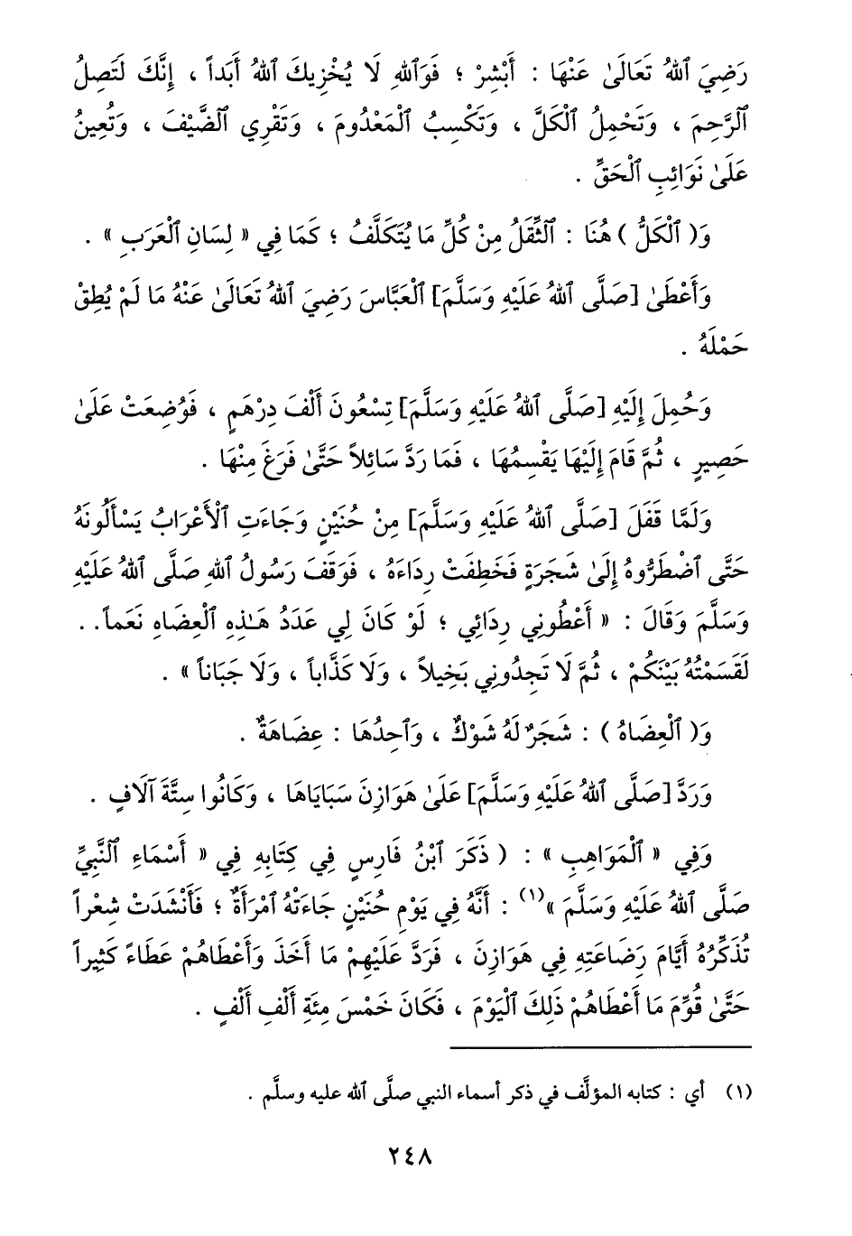 وأعطى [صلّى الله عليه وسلّم] العبّاس رضي الله تعالى عنه ما لم يطق حمله.
