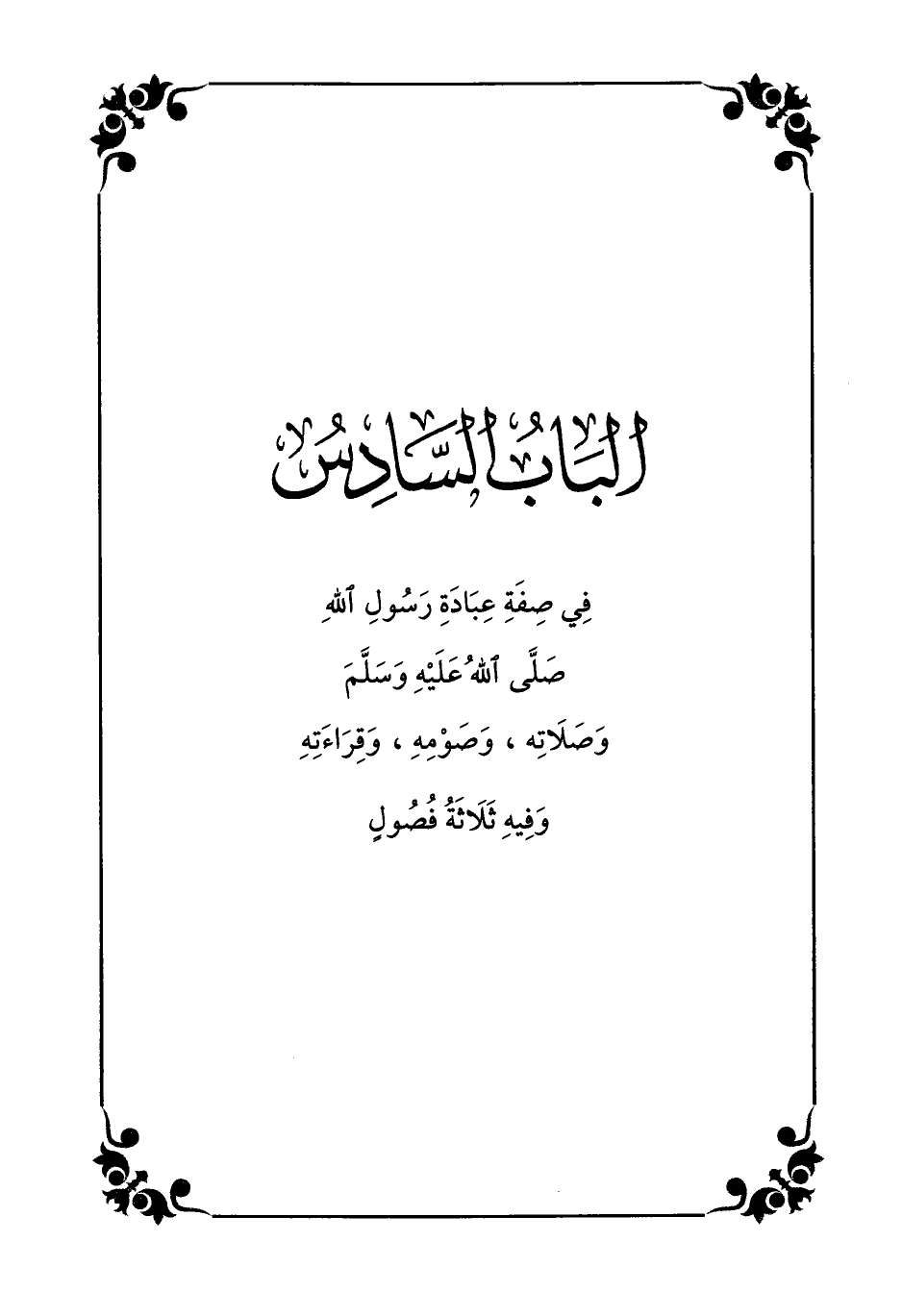 الباب السّادس في صفة عبادة رسول الله صلّى الله عليه وسلّم وصلاته، وصومه، وقراءته