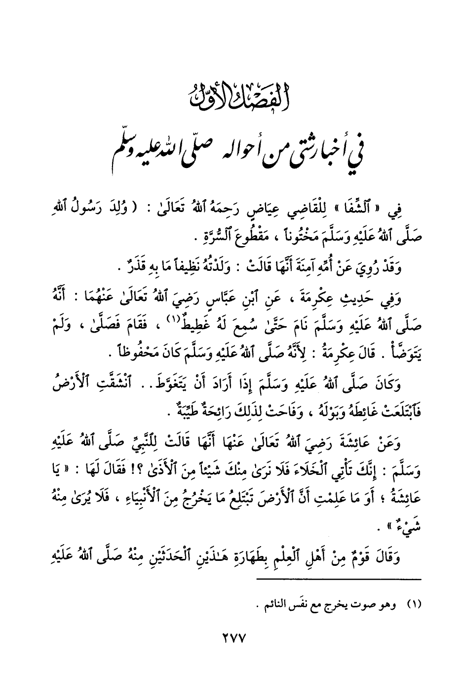 في «الشّفا» للقاضي عياض رحمه الله تعالى: (ولد رسول الله صلّى الله عليه وسلّم مختونا، مقطوع السّرّة.