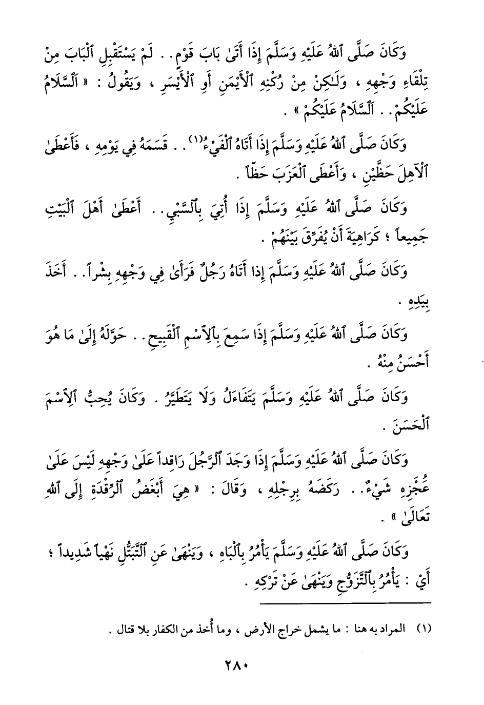وكان صلّى الله عليه وسلّم إذا أتي بالسّبي.. أعطى أهل البيت جميعا؛ كراهية أن يفرّق بينهم.