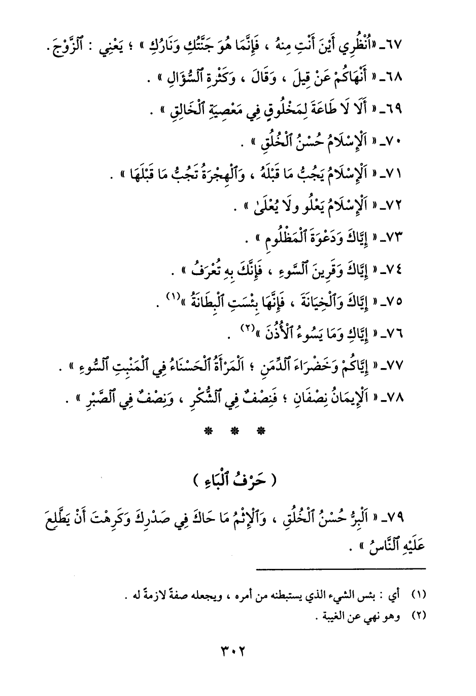 79- «البرّ حسن الخلق، والإثم ما حاك في صدرك وكرهت أن يطّلع عليه النّاس» .