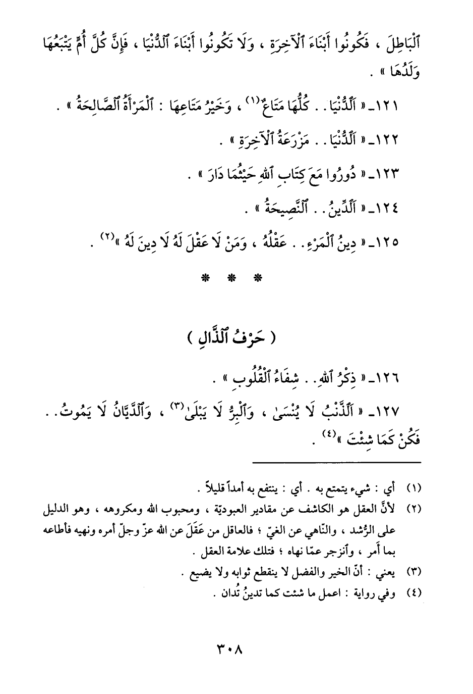 125- «دين المرء.. عقله، ومن لا عقل له لا دين له» «2» .