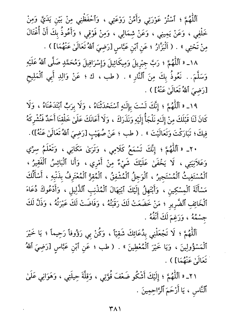 18- «اللهمّ؛ ربّ جبريل وميكائيل وإسرافيل ومحمّد صلّى الله عليه وسلّم.. نعوذ بك من النّار» . (طب، ك؛ عن والد أبي المليح [رضي الله تعالى عنه] ) .