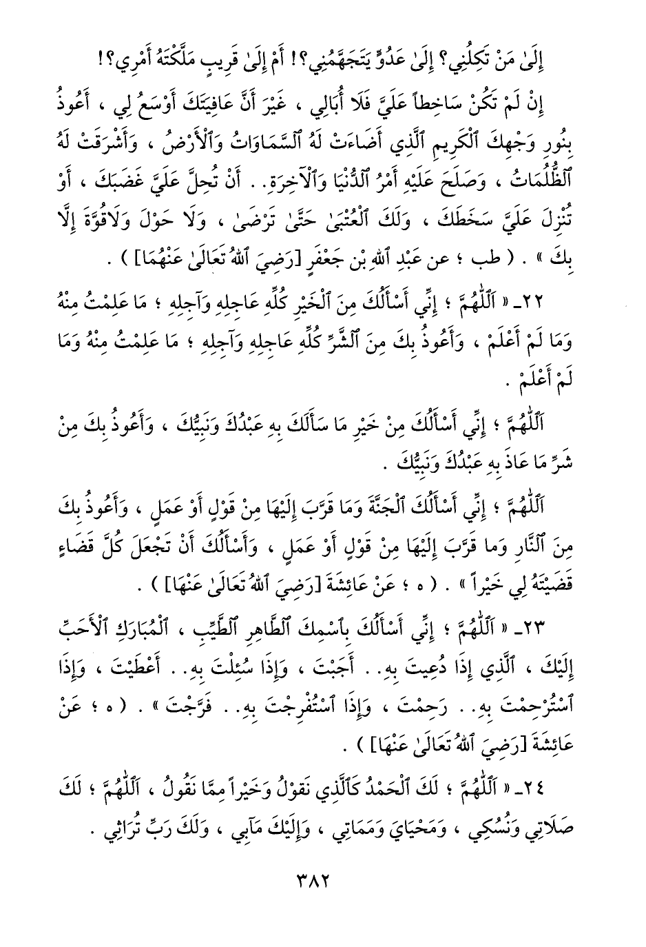 22- «اللهمّ؛ إنّي أسألك من الخير كلّه عاجله واجله؛ ما علمت منه وما لم أعلم، وأعوذ بك من الشّرّ كلّه عاجله واجله؛ ما علمت منه وما لم أعلم.