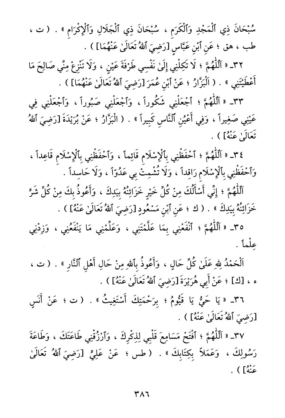 32- «اللهمّ؛ لا تكلني إلى نفسي طرفة عين، ولا تنزع منّي صالح ما أعطيتني» . (البزّار؛ عن ابن عمر [رضي الله تعالى عنهما] ) .