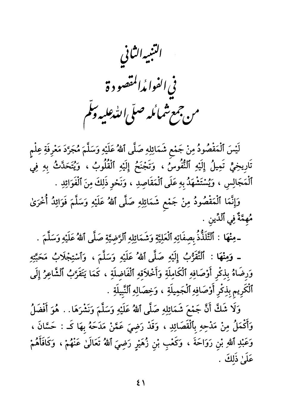 التنبيه الثاني في الفوائد المقصودة من جمع شمائله صلّى الله عليه وسلّم