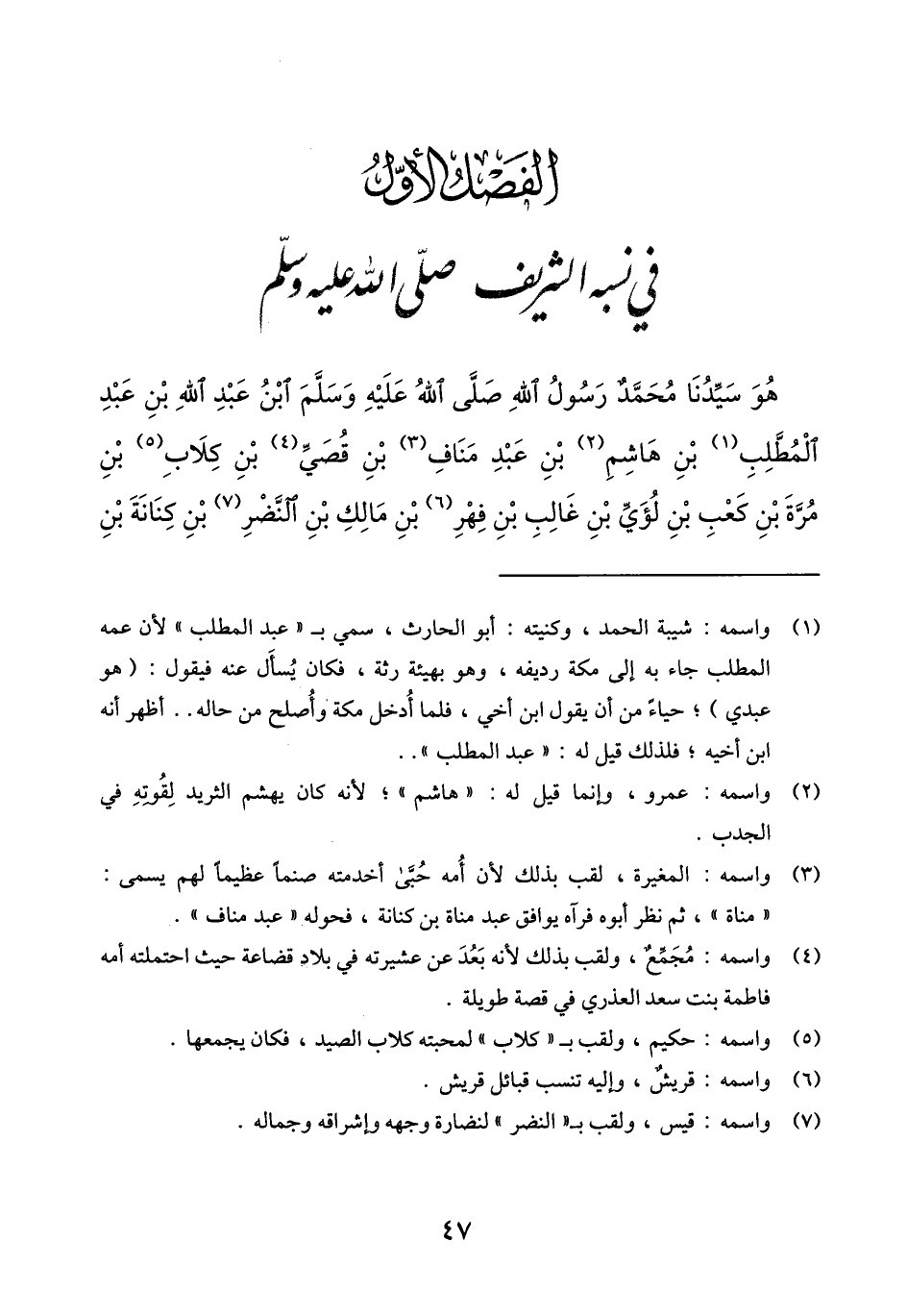 الفصل الأوّل في نسبه الشريف صلّى الله عليه وسلّم