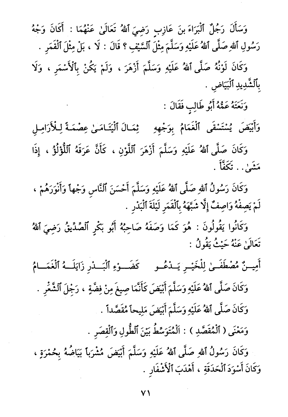 وكان رسول الله صلّى الله عليه وسلّم أحسن النّاس وجها وأنورهم، لم يصفه واصف إلّا شبّهه بالقمر ليلة البدر.