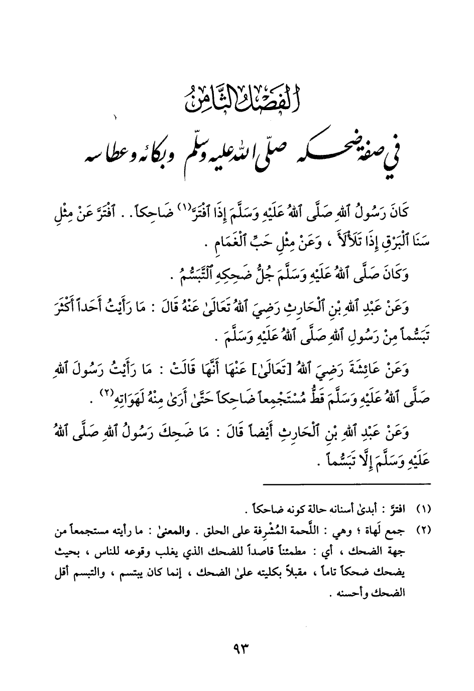 الفصل الثّامن في صفة ضحكه صلّى الله عليه وسلّم وبكائه وعطاسه