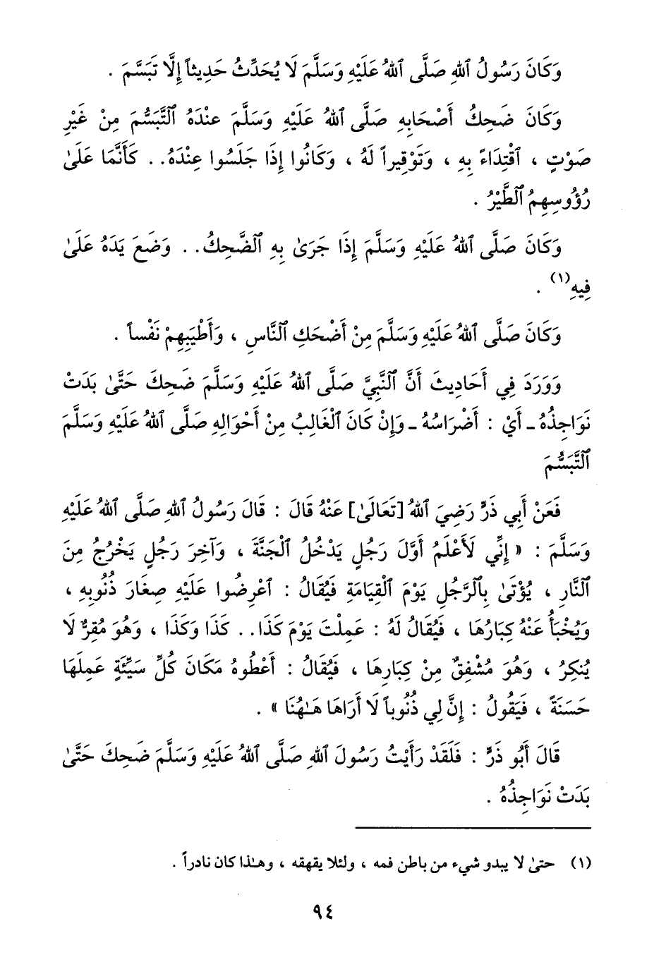 قال أبو ذرّ: فلقد رأيت رسول الله صلّى الله عليه وسلّم ضحك حتّى بدت نواجذه.