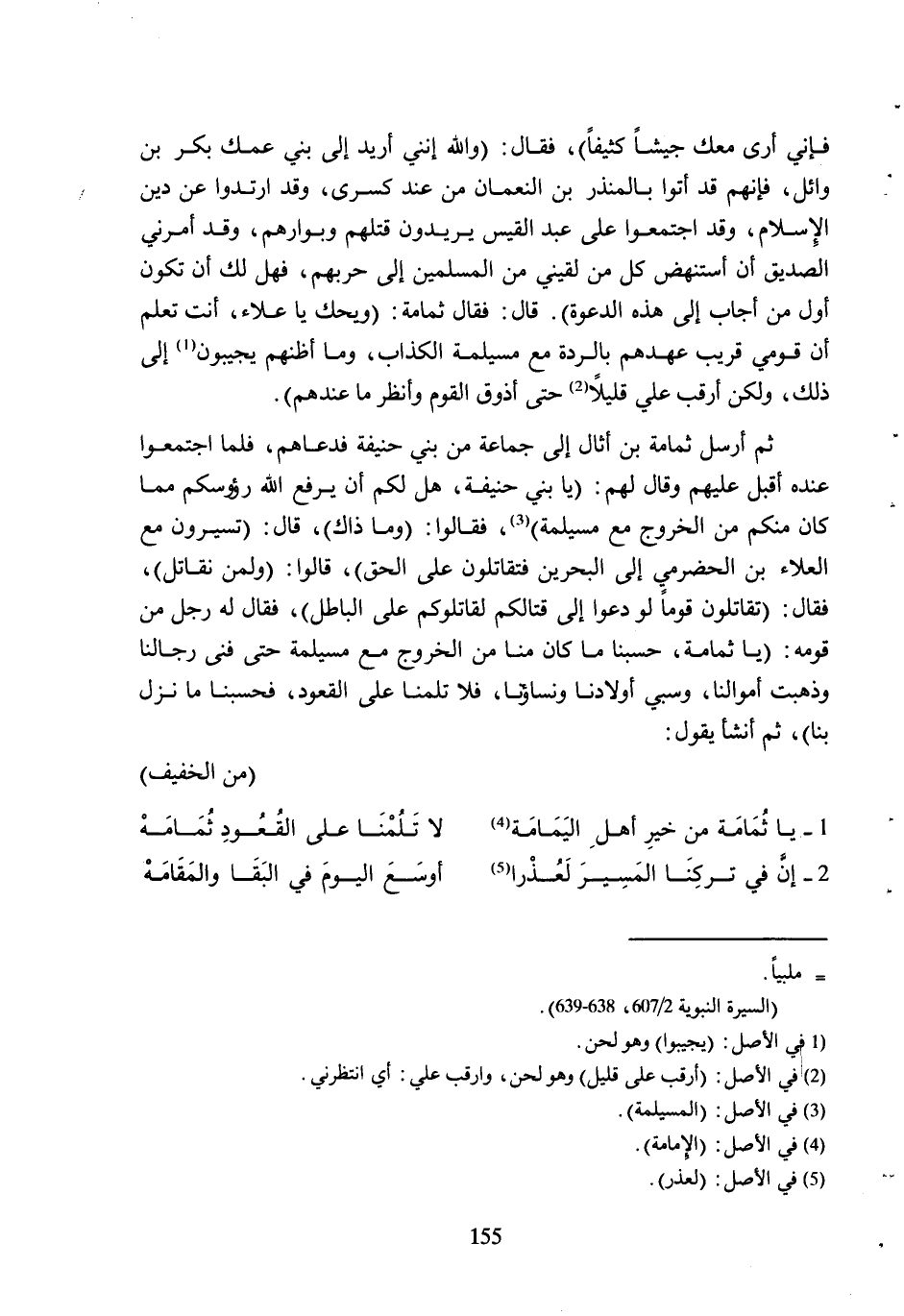 1- يَا ثُمَامَةُ مِنْ خَيْرِ أَهْلِ الْيَمَامَةِ [4] ... لا تَلُمْنَا عَلَى الْقُعُودِ ثُمَامَهْ