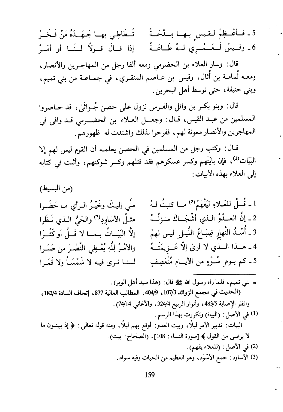 1- قُلْ لِلْعَلاءِ لِيَفْهَمَ [2] مَا كَتَبْتُ لَهُ ... مِنِّي إِلَيْكَ وَخَيْرُ الرَّأْيِ مَا حَضَرَا