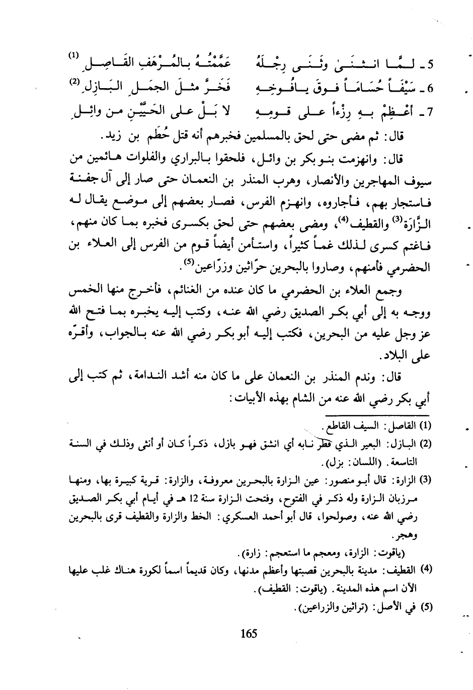 5- لَمَّا انْثَنَى وَثَنَى رِجْلَهُ ... عَمَّمْتُهُ بِالْمُرْهَفِ الْقَاصِلِ [1]