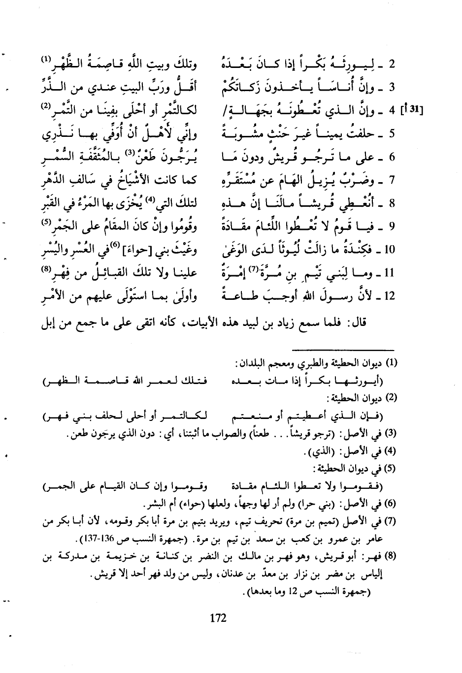 [7] في الأصل (تميم بن مرة) تحريف تيم، ويريد بتيم بن مرة أبا بكر وقومه، لأن أبا بكر من عامر بن عمرو بن كعب بن سعد بن تيم بن مرة. (جمهرة النسب ص 136- 137) .