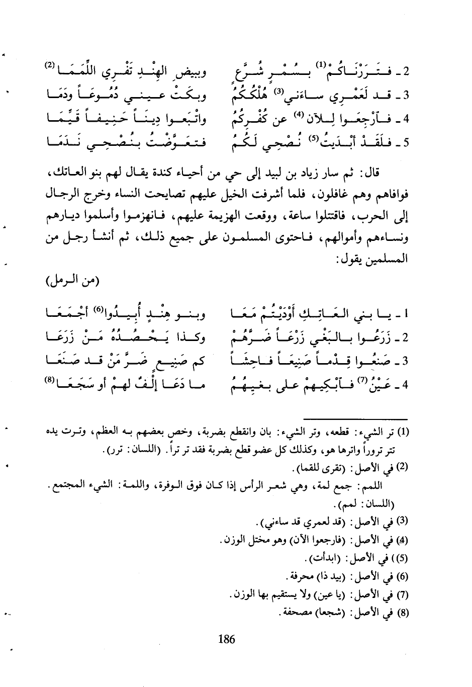 1- يَا بَنِي الْعَاتِكِ أَوْدَيْتُمْ مَعَا ... وَبَنُو هِنْدٍ أُبِيدُوا [6] أَجْمَعَا