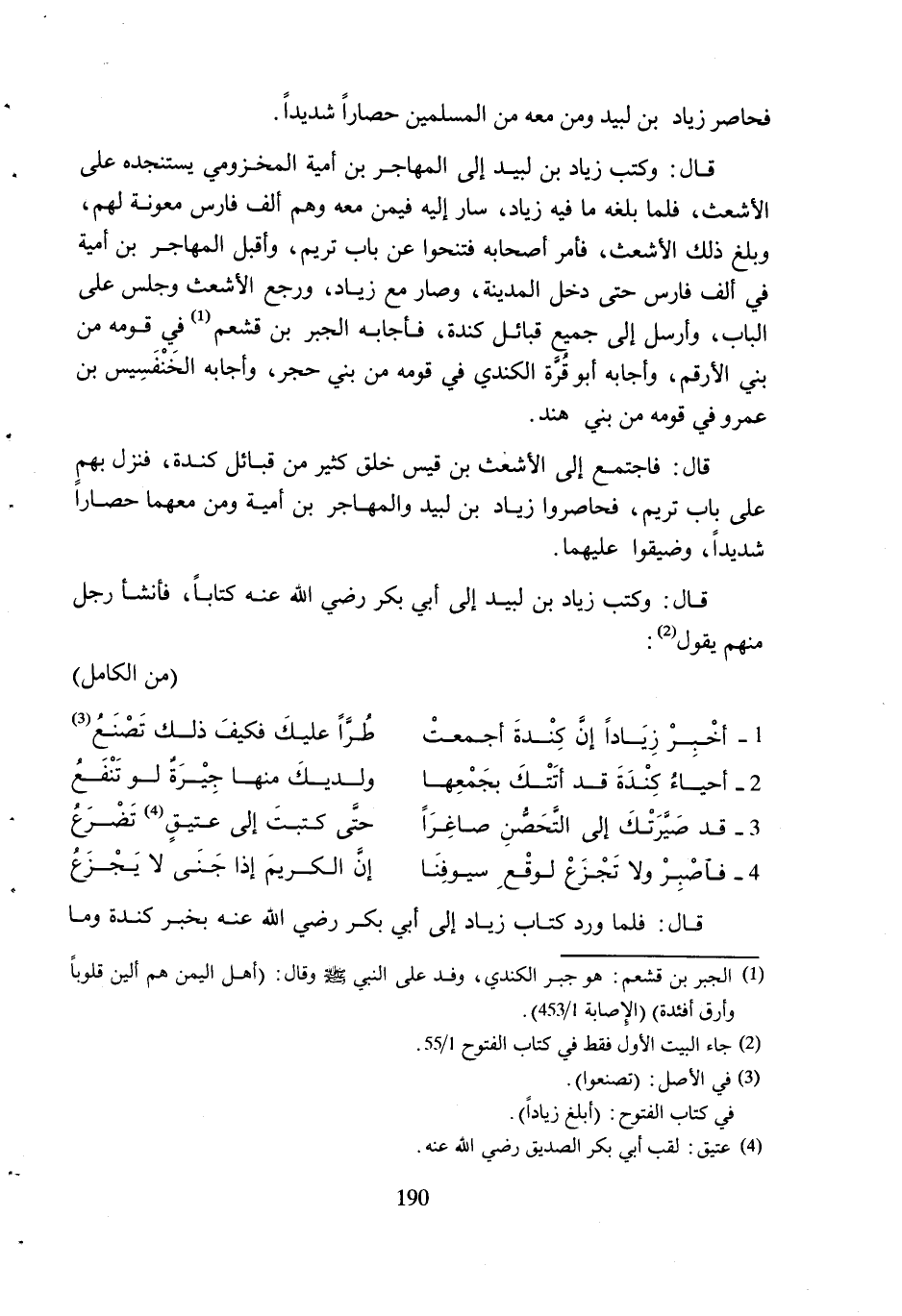 قَالَ: وَكَتَبَ زِيَادُ بْنُ لَبِيدٍ إِلَى أَبِي بَكْرٍ رَضِيَ اللَّهُ عَنْهُ كِتَابًا، فَأَنْشَأَ رَجُلٌ مِنْهُمْ يَقُولُ [2] :