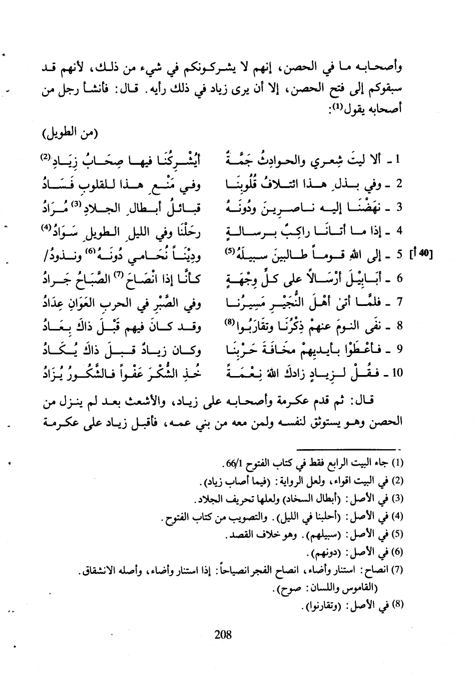 1- أَلا لَيْتَ شِعْرِي وَالْحَوَادِثُ جَمَّةٌ ... أَيَشْرَكُنَا فِيهَا صِحَابُ زِيَادْ [2]
