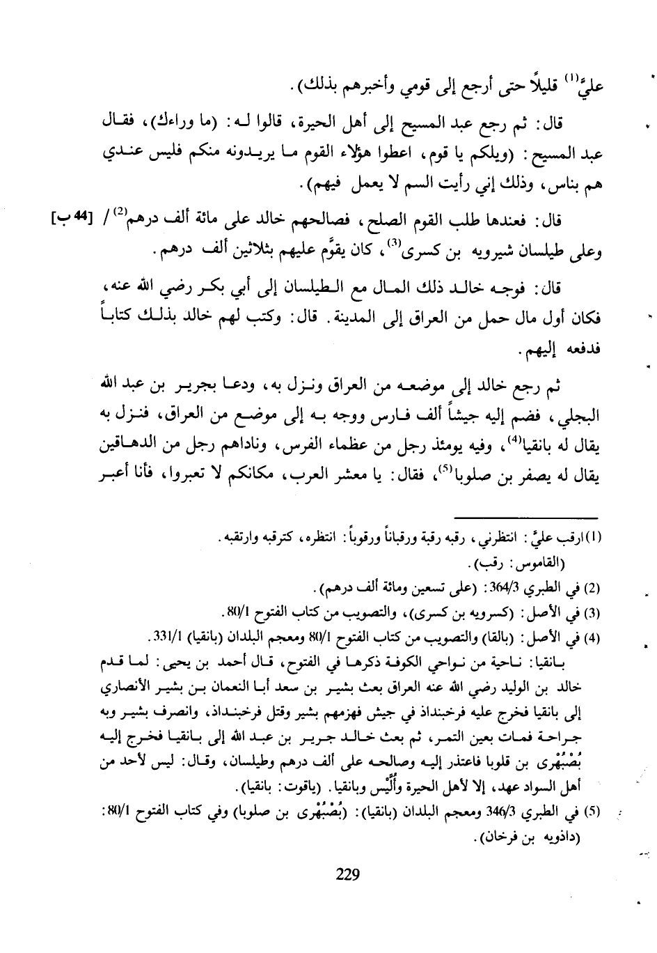 [5] في الطبري 3/ 346 ومعجم البلدان (بانقيا) : (بصبهرى بن صلوبا) وفي كتاب الفتوح 1/ 80: