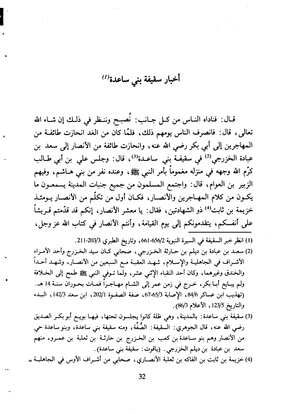 أَخْبَارُ سَقِيفَةِ بَنِي سَاعِدَةَ [1]