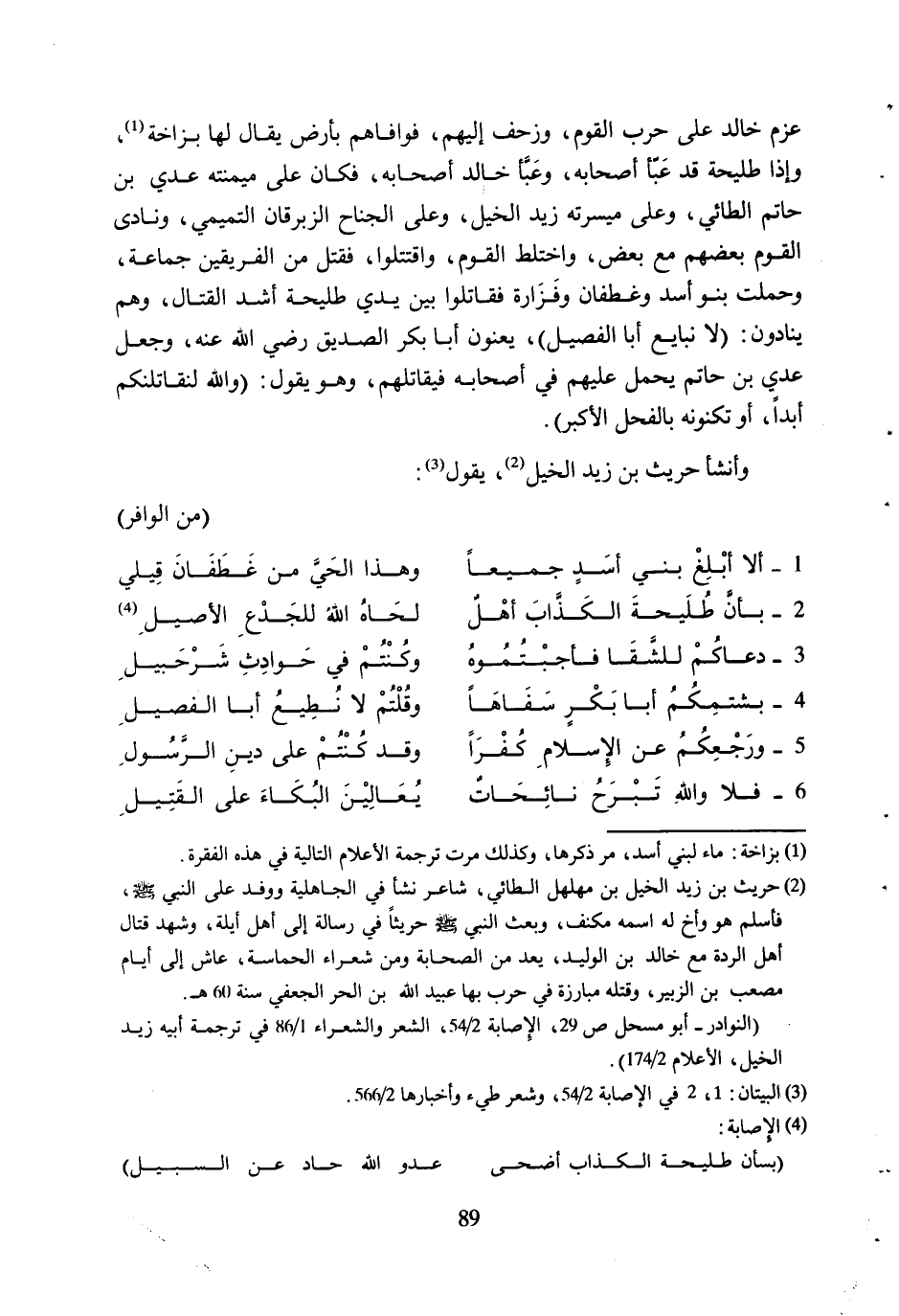 [1] بزاخة: ماء لبني أسد، مر ذكرها، وكذلك مرت ترجمة الأعلام التالية في هذه الفقرة.