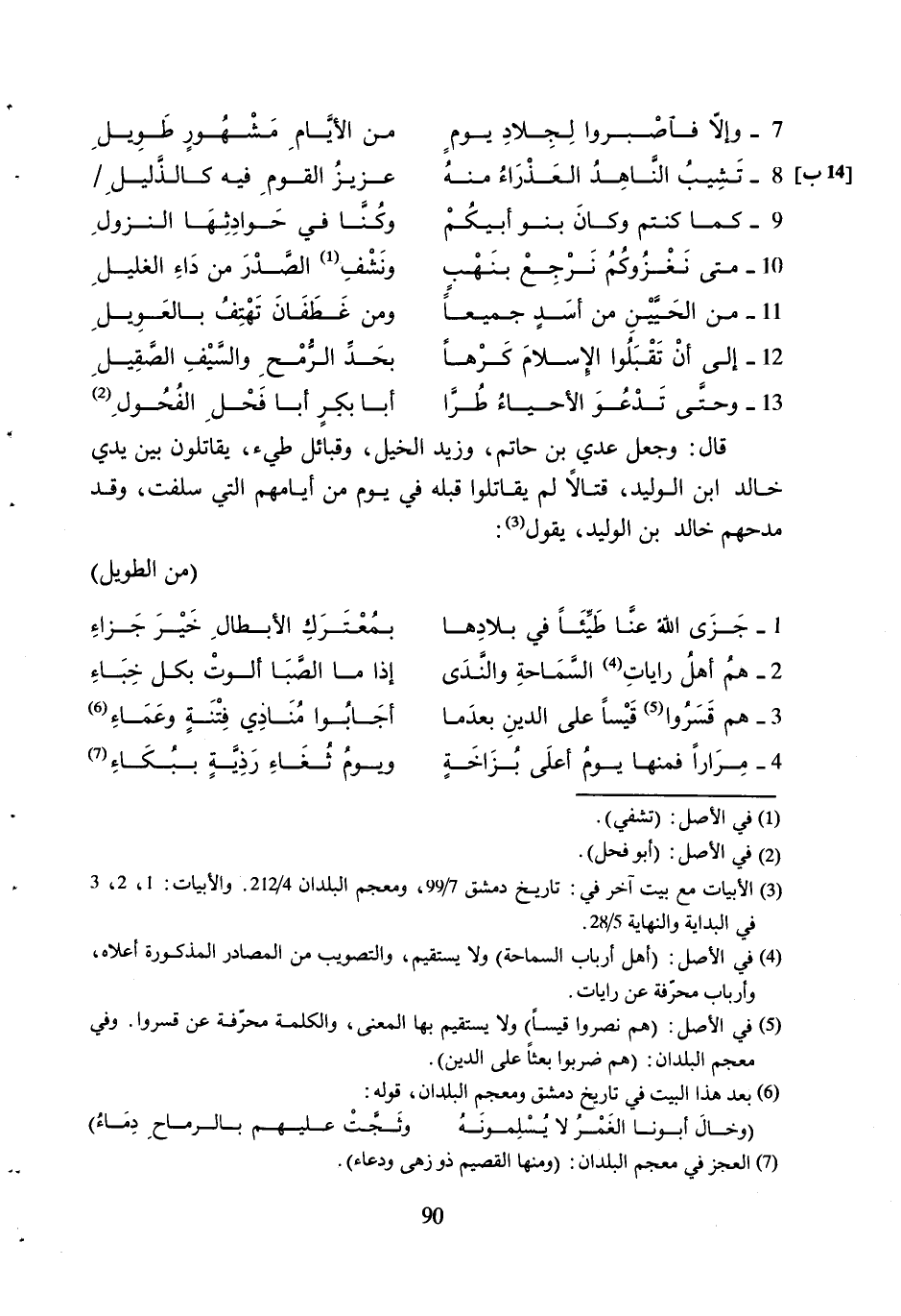 [3] الأبيات مع بيت آخر في: تاريخ دمشق 7/ 99، ومعجم البلدان 4/ 212. والأبيات: 1، 2، 3 في البداية والنهاية 5/ 28.