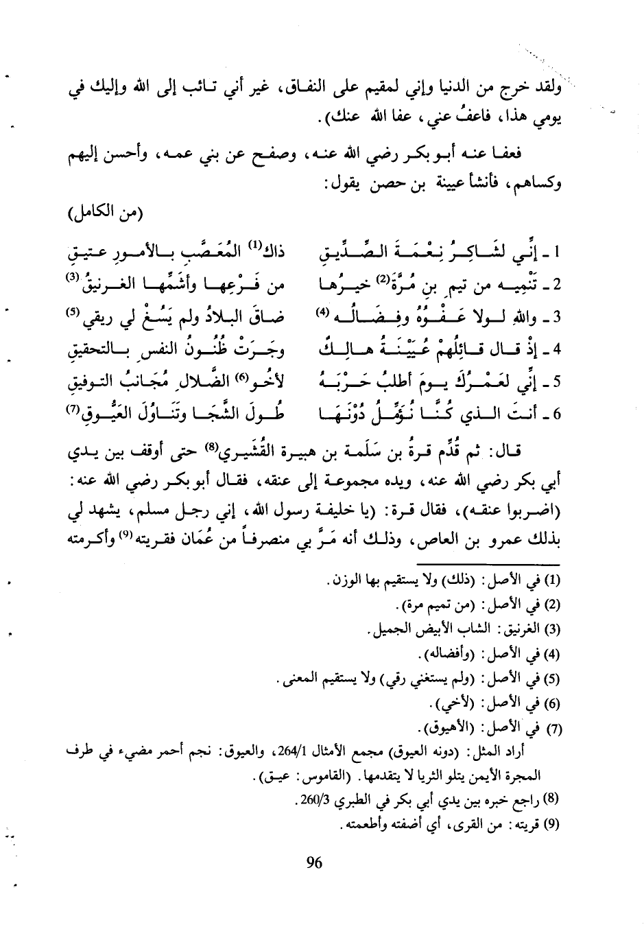 1- إنِّي لَشَاكِرُ نِعْمَةِ الصِّدِّيقِ ... ذَاكَ [1] المعصَّب بِالأُمُورِ عَتِيقُ