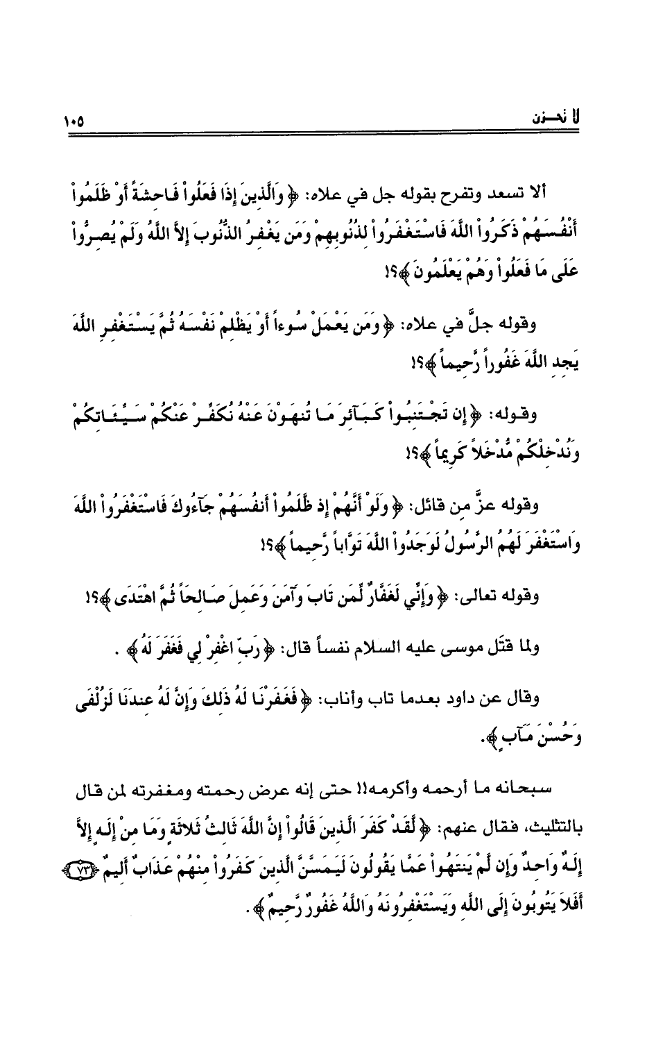 ألا تسعدُ وتفرحُ بقولِهِ جلَّ في علاه: {وَالَّذِينَ إِذَا فَعَلُواْ فَاحِشَةً أَوْ ظَلَمُواْ أَنْفُسَهُمْ ذَكَرُواْ اللهَ فَاسْتَغْفَرُواْ لِذُنُوبِهِمْ وَمَن يَغْفِرُ الذُّنُوبَ إِلاَّ اللهُ وَلَمْ يُصِرُّواْ عَلَى مَا فَعَلُواْ وَهُمْ يَعْلَمُونَ} ؟!