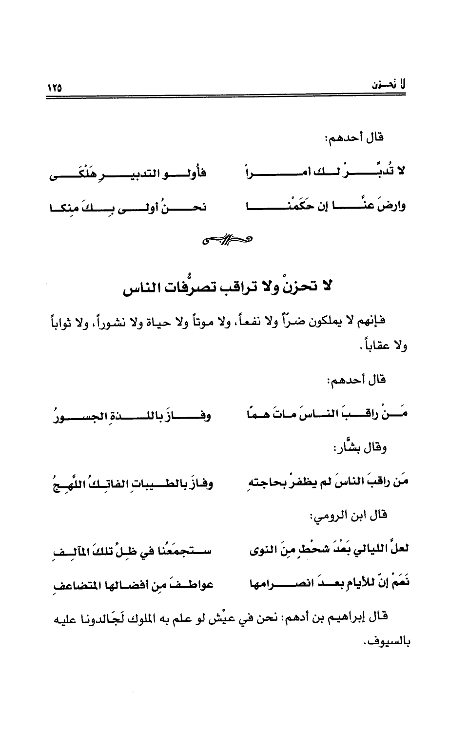 قالَ إبراهيمُ بن أدهم: نحن في عيْشٍ لوْ علم بهِ الملوكُ لجالدونا عليهِ بالسيوفِ.