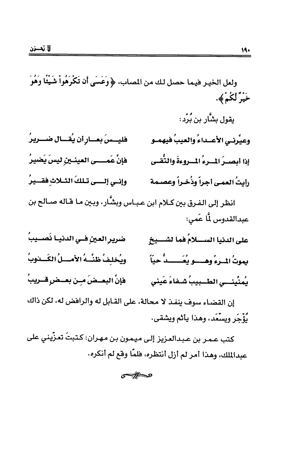 انظرْ إلى الفرقِ بين كلامِ ابنِ عباسٍ وبشَّارِ، وبين ما قاله صالحُ بن عبد القدوسِ لمَّا عَمي: