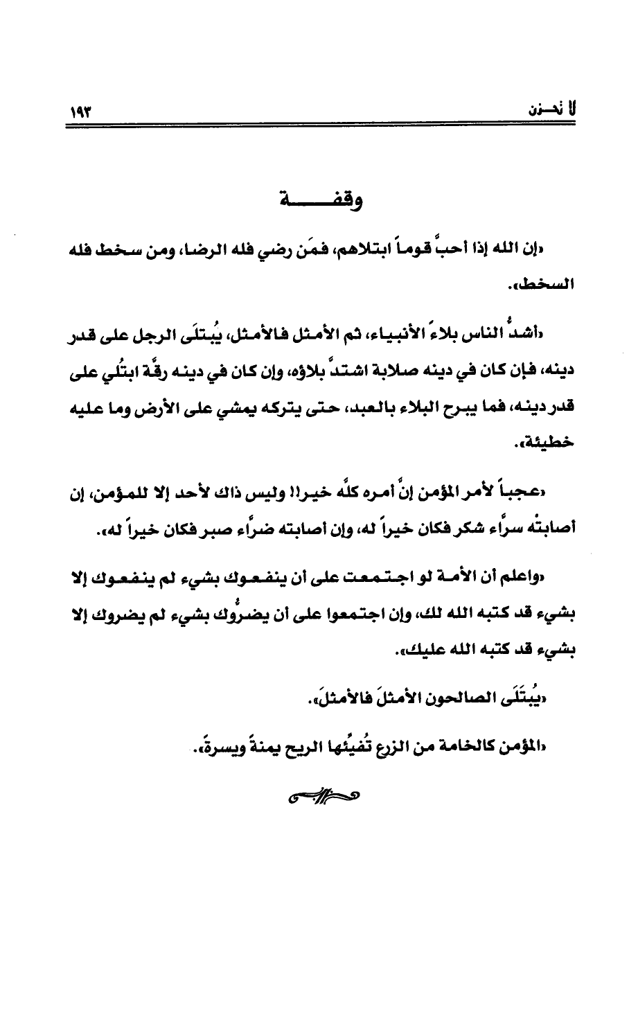 ((يُبتلى الصالحون الأمثلُ فالأمثلُ)) .