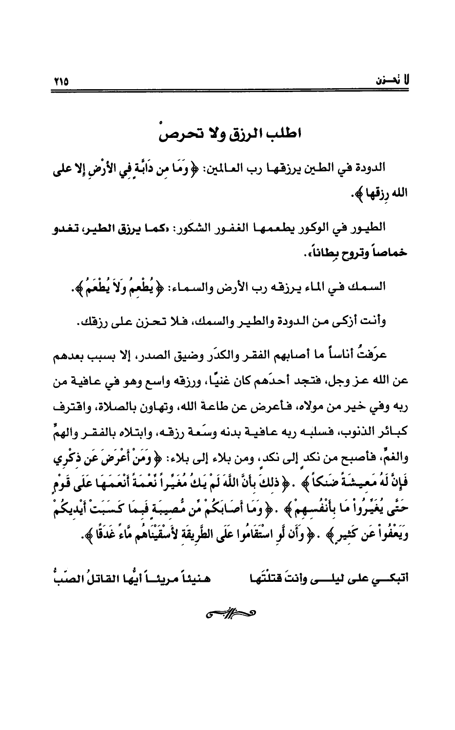 وأنت أزكى من الدودةِ والطيرِ والسمكِ، فلا تحزنْ على رزقِك.