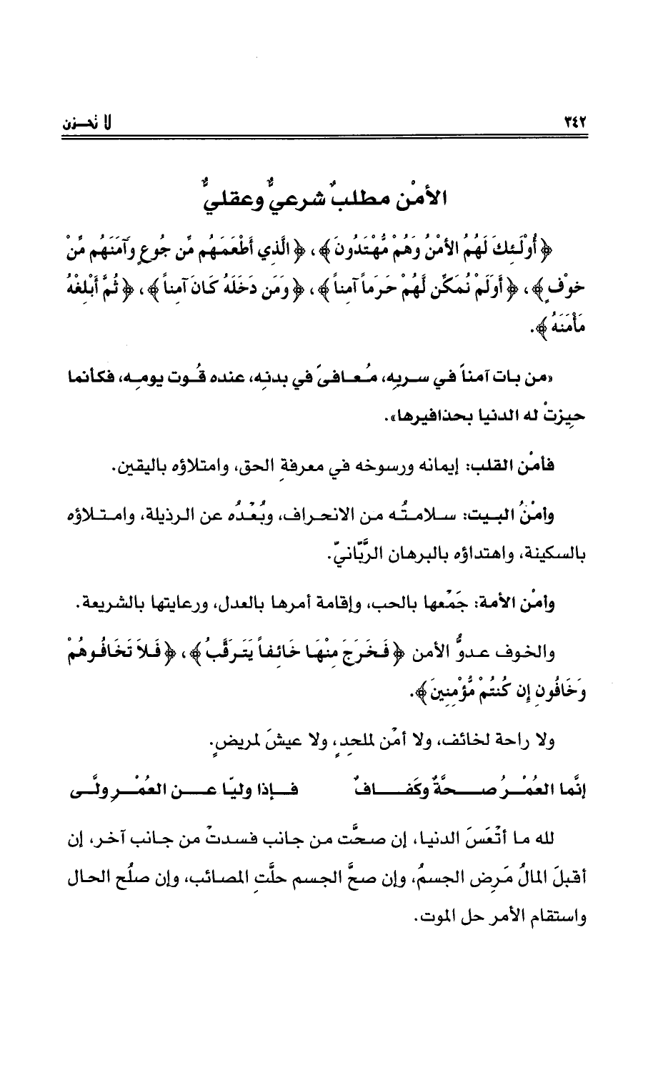 الأمْنُ مطلبٌ شرعيٌّ وعقليٌّ