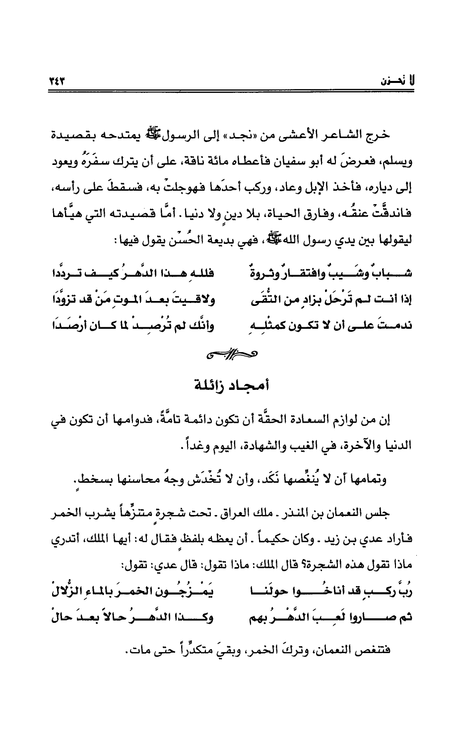 فتنغصُ النعمانُ، وترك الخمر، وبقي متكدِّراً حتى مات.