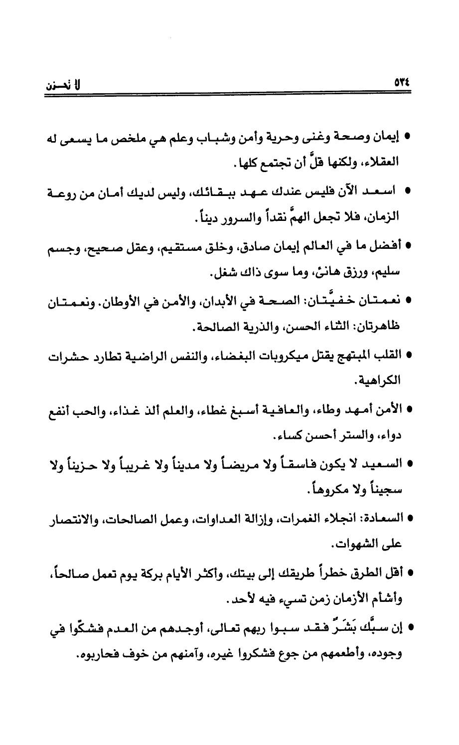 - السعيد لا يكون فاسقاً ولا مريضا ولا مديناً ولا غريباً ولا حزيناً ولا سجيناً ولا مكروهاً.