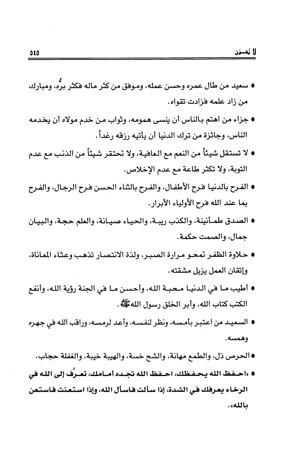 - سعيدٌ من طال عمرُه وحسن عملُه، وموفقٌ من كثُر مالُه فكثر برُّه، ومباركٌ من زاد علمُه فزادتْ تقواه.