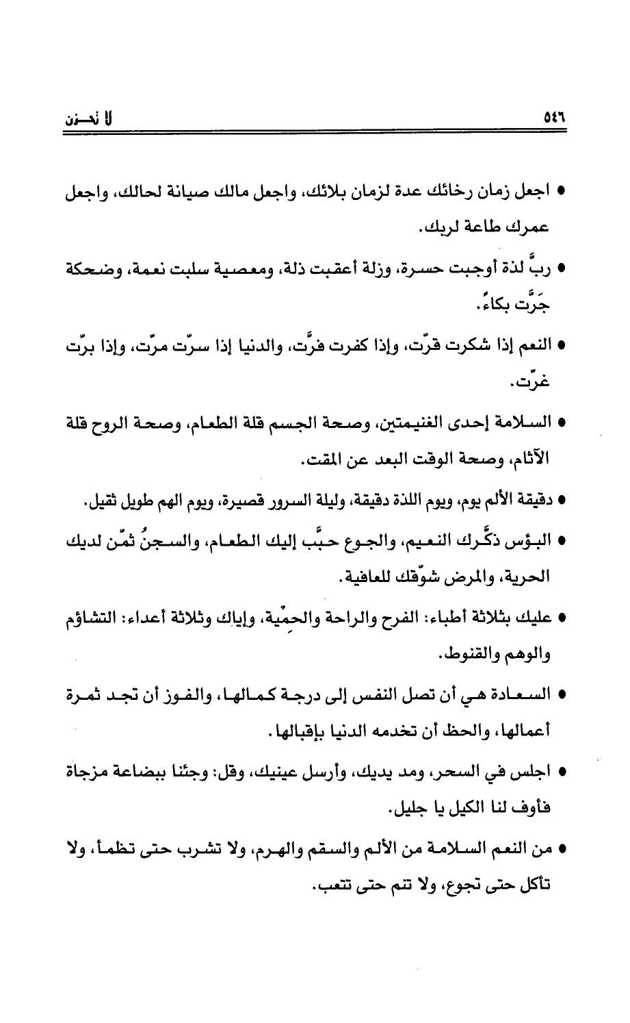 - من النعم السلامةُ من الألمِ والسقمِ والهرمِ , ولا تشربْ حتى تظمأً , ولا تأكلْ حتى تجوعَ , ولا تنمْ حتى تتعب.