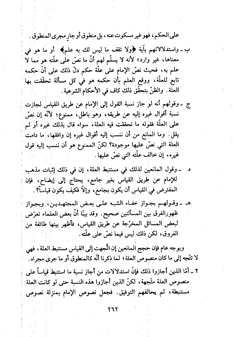 ب- واستدلالاتهم بآية {ولا تقف ما ليس لك به علم} أو ما هو في معناها، غير وارد؛ لأنه لا يسلم لهم أن ما نص على علته هو مما لا علم به، فحيث نص الإمام على علة حكم دل ذلك على أن حكمه تابع للعلة، ووقع العلم بأن حكمه هو في كل مسألة تحققت بها العلة. والظن بتحقق ذلك كاف في الأحكام الشرعية.