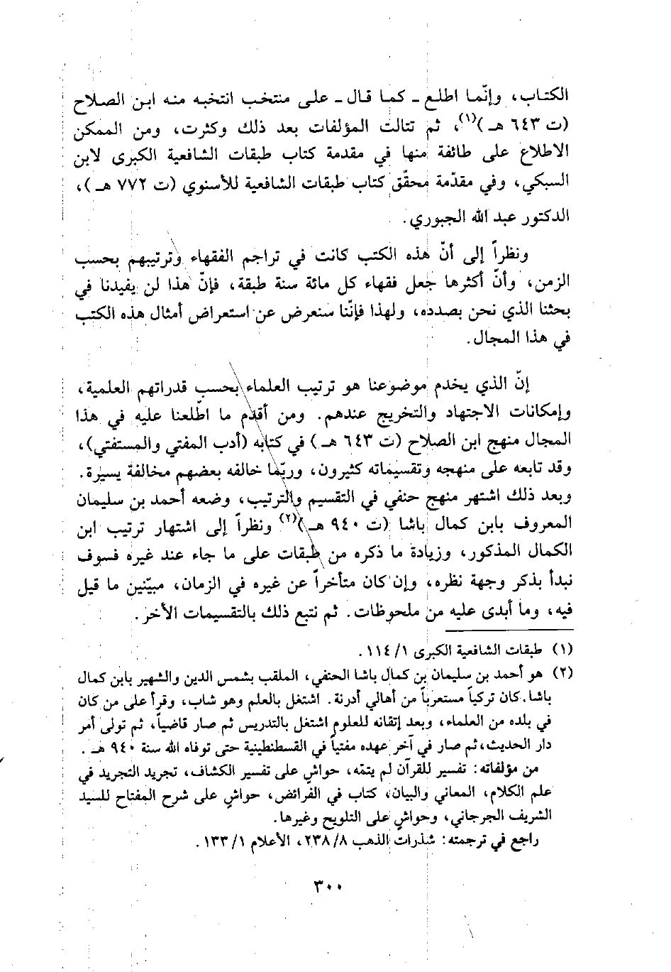 إن الذي يخدم موضوعنا هو ترتيب العلماء بحسب قدراتهم العلمية، وإمكانات الاجتهاد والتخريج عندهم. ومن أقدم ما اطلعنا عليه في هذا المجال منهج ابن الصلاح (ت ٦٤٣هـ) في كتابه (أدب المفتي والمستفتي)، وقد تابعه على منهجه وتقسيماته كثيرون، وربما خالفه بعضهم مخالفة يسيرة. وبعد ذلك اشتهر منهج حنفي في التقسيم والترتيب، وضعه أحمد بن سليمان المعروف بابن كمال باشا (ت ٩٤٠هـ) (٢) ونظراً إلى اشتهار ترتيب ابن الكمال المذكور، وزيادة ما ذكره من طبقات على ما جاء عند غيره فسوف نبدأ بذكر وجهة نظره، وإن كان متأخراً عن غيره في الزمان، مبينين ما قيل فيه، وما أبدى عليه من ملحوظات. ثم نتبع ذلك بالتقسيمات الأخر.